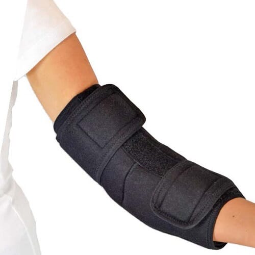 En ortose som begrenser albuens fleksjon for å lindre smerte i forbindelse med cubitaltunnelsyndrom.