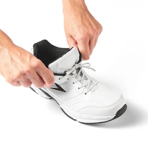 Sammen med et skohorn vil foten gli enkelt ned i skoen uten at lissen trenger å knytes opp.