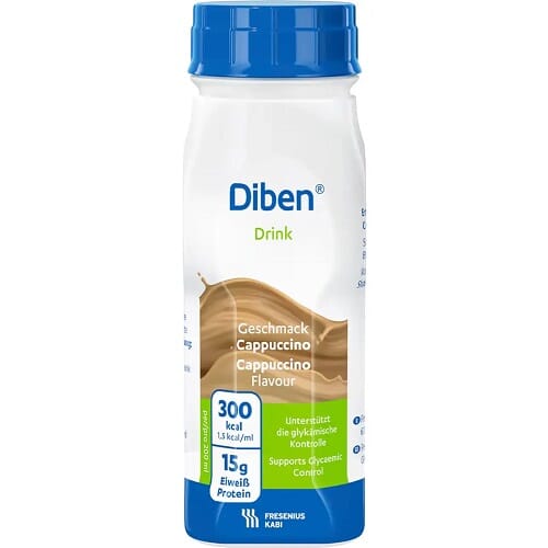 Diben Drink Cappuccino har dokumentert gunstig effekt på langtidsblodsukkeret og er derfor ypperlig for diabetikere. Næringsdrikken inneholder fiber for en god tarmfunksjon og stabilt blodsukker. Diben Drink Cappuccino inneholder også fiskeolje for kardiovaskulær beskyttelse og enumettede fettsyrer for forbedret glykemisk kontroll og insulinsensitivitet.