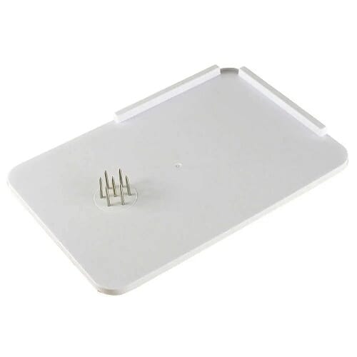 Skjærebrettet er laget av holdbar plast og kan vaskes i oppvaskmaskin for enkel rengjøring. De avtagbare piggene gjør det enkelt å fjerne og vaske alle deler grundig.