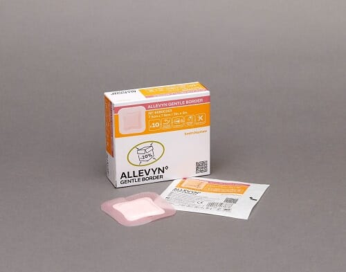 Allevyn Gentle Border er en “alt - i - en” bandasje med utmerket tilpasning, som sikrer komfort. Bandasjen kan løftes og re-applikeres uten å miste klebeevnen.