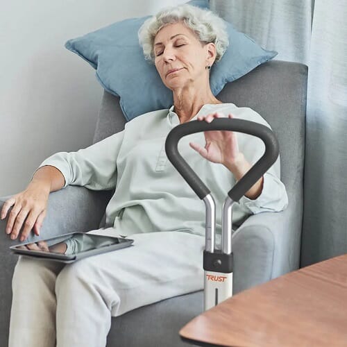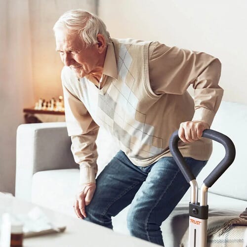 Den kan også brukes ved en sofa eller lenestol for å gi ekstra støtte ved oppreising og nedstigning.