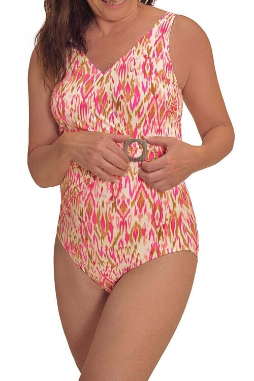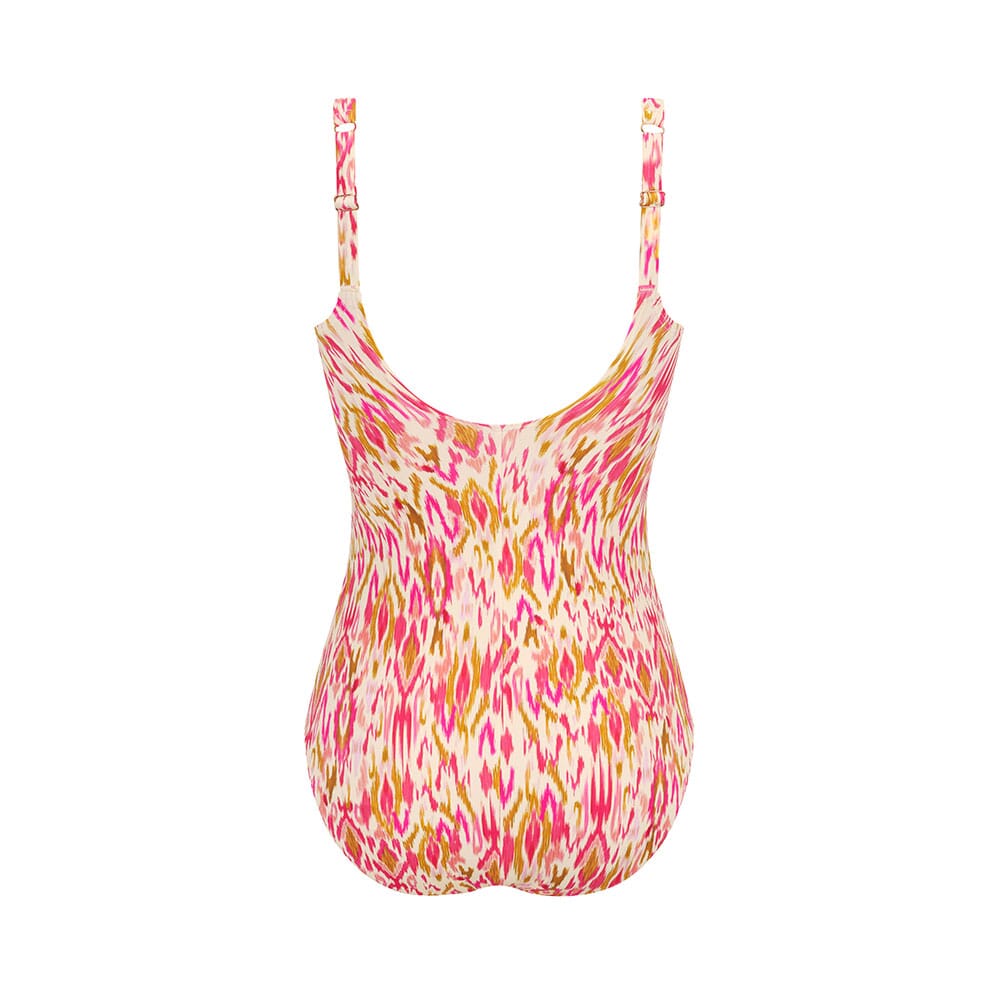 Badedrakten har bare stropper bak slik at den kan justeres til perfekt passform. Den har også en dekorativ spenne foran i trelook.