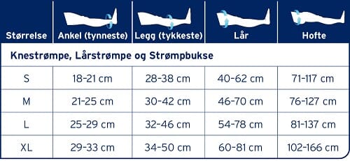 Kompresjonen i strømpen er holdbar i seks måneder ved daglig bruk.