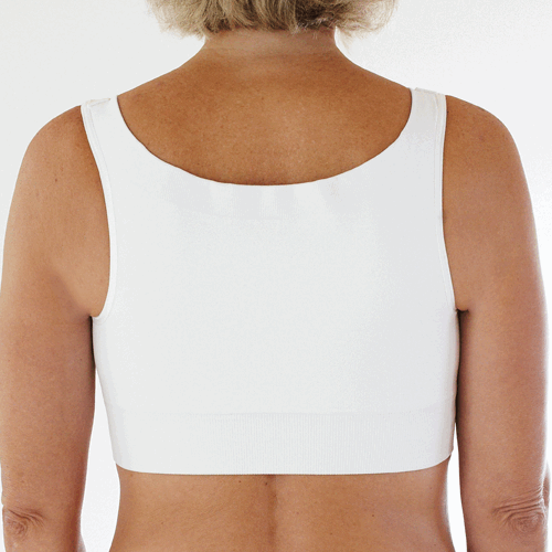 - Myk, bred og sømløs kant under bysten, føles behagelig mot snitt/arrvev.