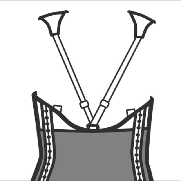 Plagget har åpent skritt som gjør det mulig å gå på toalettet uten å ta av plagget. Brede innskjæringer i ryggen og regulerbare skulderbånd gir god kompresjon over rygg og langs sidene. Bred kile på innsiden av lårene gir god komfort og funksjon.