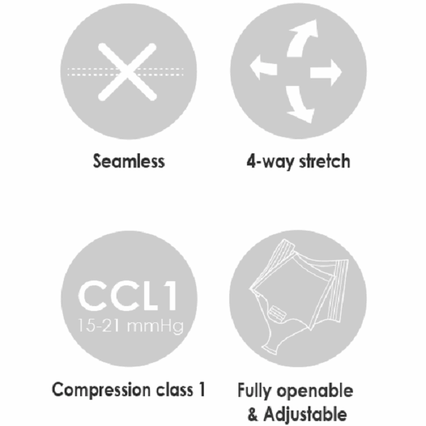 Anbefales etter plastiskkirurgi. Kompresjon forbedrer sirkulasjonen og minsker risikoen for hevelse etter operasjon, gir bedre heling og i tillegg smertelindring. Tilsvarende kompresjonsklasse 1.