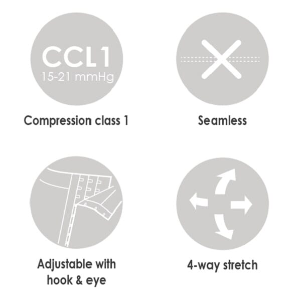 Indikasjoner: Anbefales etter plastiskkirurgi. Kompresjon forbedrer sirkulasjonen og minsker risikoen for hevelse etter operasjon, gir bedre heling og i tillegg smertelindring. Tilsvarende kompresjonsklasse 1.