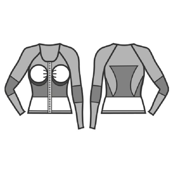 Langermet kompresjonsbolero i strikket sømløst materiale. Anbefales etter arm- eller ryggkirurgi som fettsuging og/eller kirurgi.