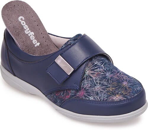 For de med misformede tær har fargekombinasjonen Navy Floral en elastan-topp som strekker seg litt for å passe til ulike fotformer.