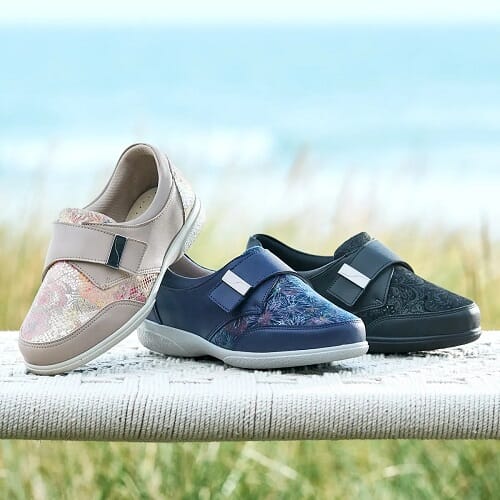 Det dype, sømfrie tåområdet er ideelt for problemtær eller sensitiv tær, og den polstrede kraften passer både hovne og slankere ankler.