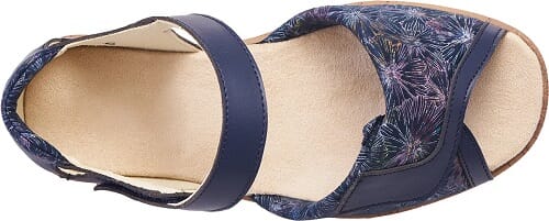 De åpner helt fram, noe som gjør det enkelt å ta av og på en hoven fot, mens den lukkede hælen, den polstrede kragen og de justerbare stroppene med borrelåsfester sikrer ekstra støtte.