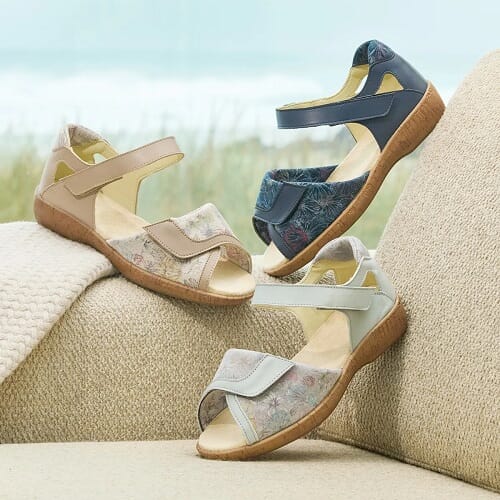 Disse elastiske og støttende sandalene er designet for å passe til hallux valgus, misformede føtter og hevelser – og gir komfort som varer hele dagen.