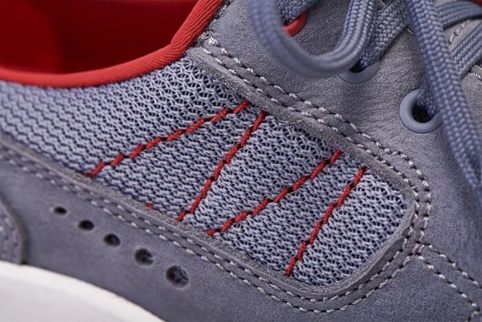 Den fleksible overdelen, konstruert av et pustende mesh, strekker seg for å tilpasse seg formen på foten. Den har skinnseksjoner for å gi økt stabilitet.